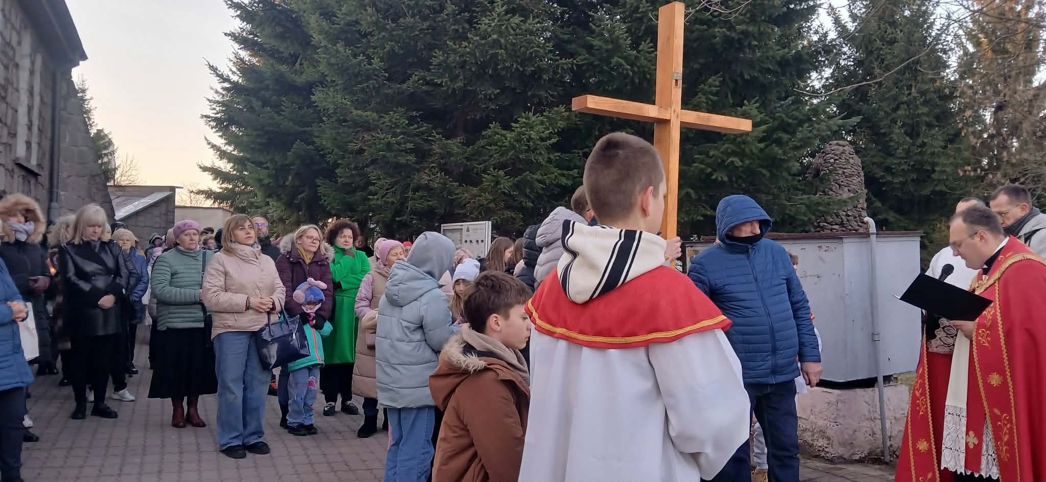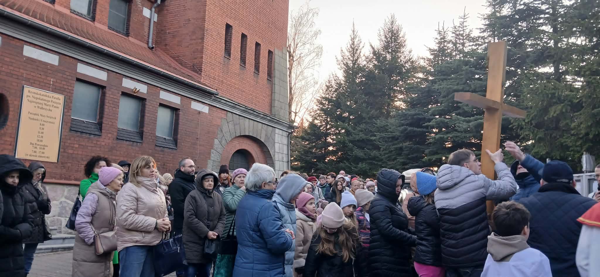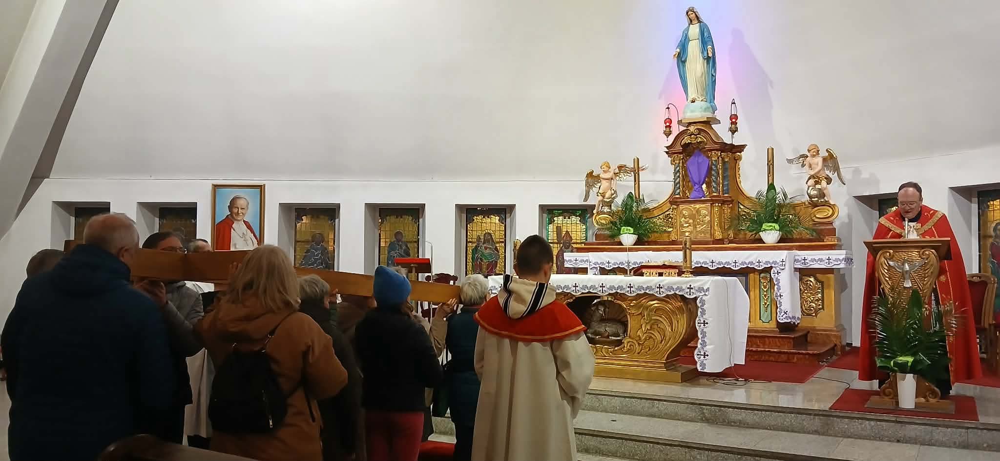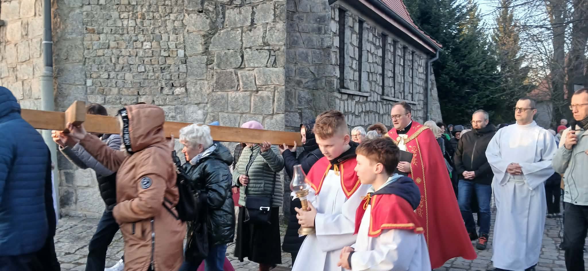 W piątek, 27 marca, młodzież naszej parafii wraz z księdzem Bartoszem Kocurem zorganizowała Drogę Krzyżową wokół kościoła. Było to wyjątkowe wydarzenie modlitewne, które zgromadziło wielu parafian pragnących wspólnie przeżywać tajemnicę męki i śmierci Pana Jezusa.
