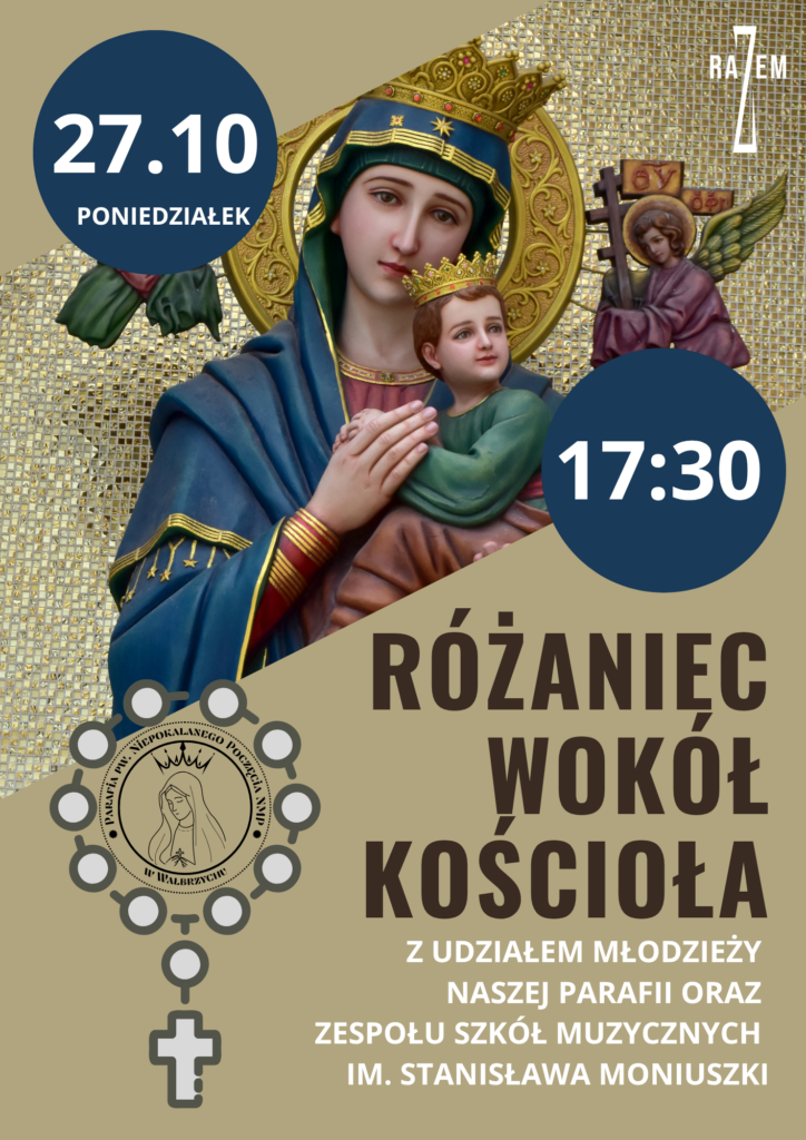 Różaniec wokół kościoła z udziałem młodzieży naszej parafii oraz Zespołu Szkół Muzycznych im. S. Moniuszki